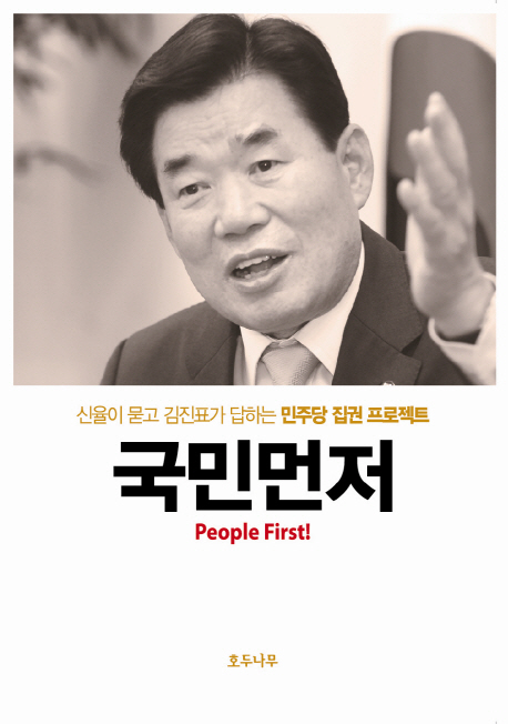 소개: 민주통합당, 국가경영의 새로운 패러다임을 제시하다!신율이 묻고 김진표가 답하는 민주당 집권 프로젝트『국민먼저』. 이 책은 경제부총리·교육부총리를 역임한 수도권 3선 의원, 전 민주통합당 원내대표 김진표와 균형 잡힌 시각, 정제된 언어로 정치토론·평론의 수준을 진일보시킨 정치학자 신율이 만나 ‘국민먼저’라는 국가경영의 새로운 패러다임을 어떻게 실현시킬 것인지에 대해 논의한 대담집이다. 181개의 질문과 대답을 통해 저자들은 정치를 위한 정책이 아니라 정책을 위한 정치, ‘국민 먼저’의 가치 실현을 위한 정치가 시급하다는 것을 강조한다. 경제민주화의 올바른 방향은 무엇이며, 교육백년대계를 위한 구체적인 대안은 무엇인지, 21세기 대한민국의 국가경영 리더십의 모델은 무엇인지 등 ‘국민먼저’의 시대를 열기 위한 이야기들을 제시하고, 앞으로 민주통합당이 집권을 이루기 위해 어떤 가치와 비전, 정책에 기반 해야 하는지를 모색한다.