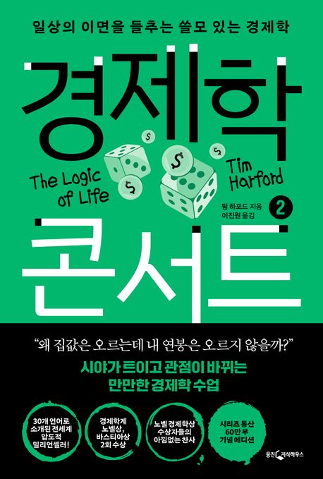 소개: “왜 집값은 오르는데 내 연봉은 오르지 않을까?”시야가 트이고 관점이 바뀌는 만만한 경제학 수업팀 하포트의 대국민 경제교양서가 돌아왔다!★★★★★ 30개 언어로 소개된 전 세계 압도적 밀리언셀러!★★★★★ 경제학계 노벨상, 바스티아상 2회 수상★★★★★ 노벨 경제학상 수상자들의 아낌없는 찬사★★★★★ 시리즈 통산 60만 부 기념 에디션출간 당시부터 노벨 경제학상 수상자들과 내로라하는 경제학자들의 뜨거운 지지를 받았을 뿐만 아니라 대한민국 경제 교양서 시장의 포문을 열었다고 평가 받는 『경제학 콘서트』시리즈의 두 번째 책 『경제학 콘서트 2』가 2023년 시리즈 통산 60만 부 판매를 기념하여 새 단장해 독자 곁을 찾았다. 『경제학 콘서트 1』에 이어 출간된 『경제학 콘서트 2』는 더욱 본격적으로 우리의 일상을 경제학의 프레임으로 조명한다. “왜 잘나가는 여자가 평범한 남자와 결혼할까?”, “왜 이상한 후보가 당선될까?”, “왜 무능력한 상사가 높은 연봉을 받을까?” 등 누구나 한번쯤 궁금했던 일상 속 현상들을 경제학자의 시선으로 날카롭게 분석한다. 이 책은 합리적 선택과 차별 이론에서부터 스필오버와 게임 이론, 정치와 경제성장 문제에 이르기까지 어렵고 복잡한 경제 이론을 초보자도 완벽히 이해할 수 있도록 명쾌하게 풀어내며 경제학이 우리 삶에 얼마나 쓸모 있는 학문인지를 증명해낸다. 경제학이 우리 삶을 어떻게 지배하고 있는지 위트 있게 풀어낸 이 책을 통해 독자들은 불합리한 세상에서 좀 더 합리적인 선택을 할 수 있게 될 것이다.